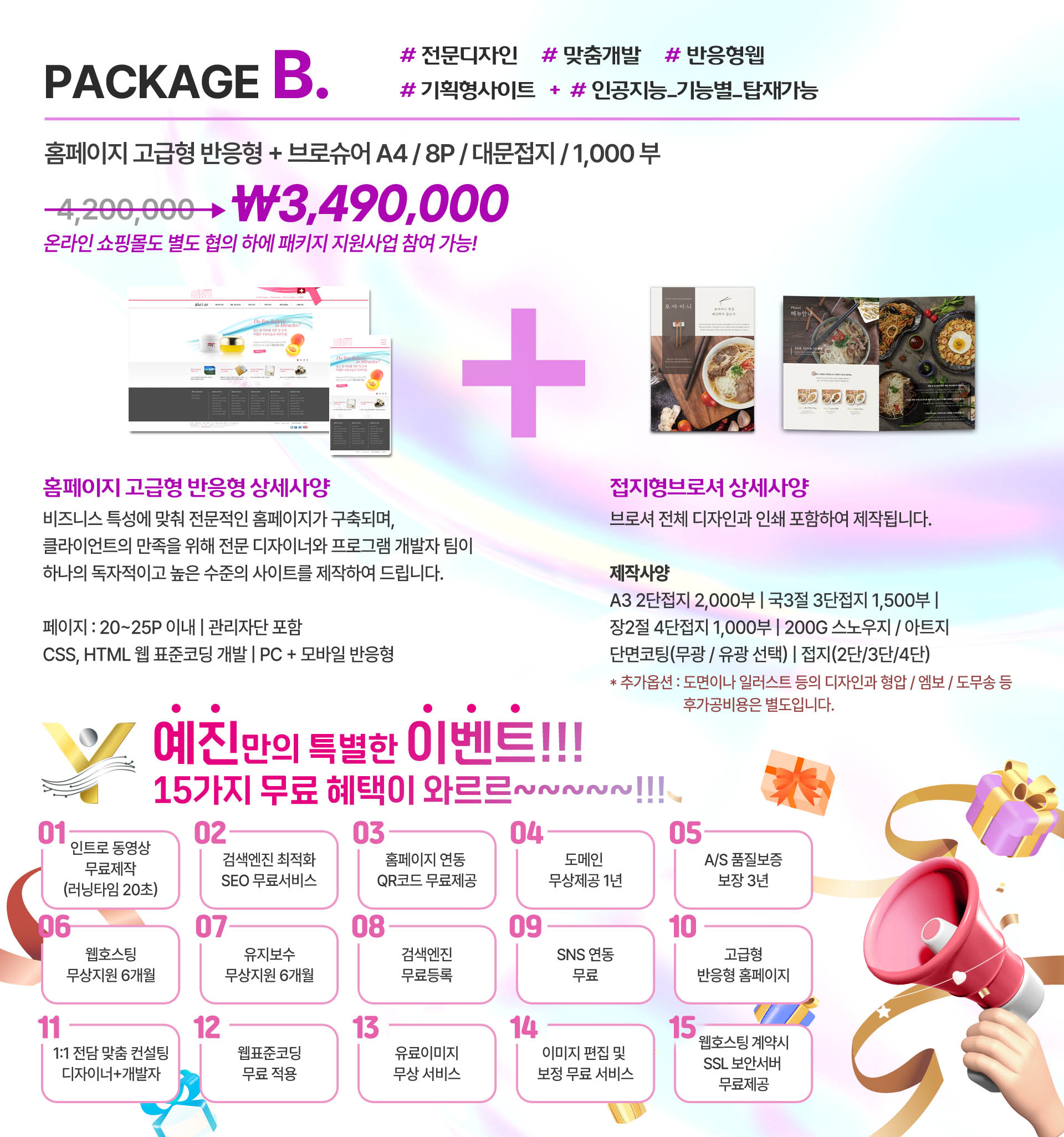 패키지 상품 안내 : PackageB (홈페이지 고급형 반응형 + 브로슈어)
